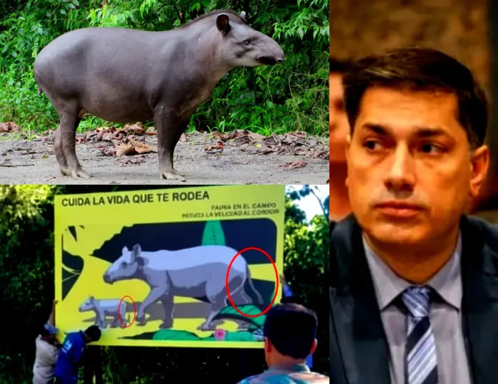 terminó convirtiéndose en un papelón institucional que generó repudio en las redes sociales. El Ministerio de Ecología colocó carteles de grandes dimensiones, de unos 4 metros de largo, con la intención de pedir a los automovilistas que reduzcan la velocidad para evitar atropellamientos de fauna nativa. Sin embargo, la iniciativa falló al utilizar ilustraciones que mostraban una versión deformada del tapir, con características anatómicas que no corresponden en absoluto a la especie.