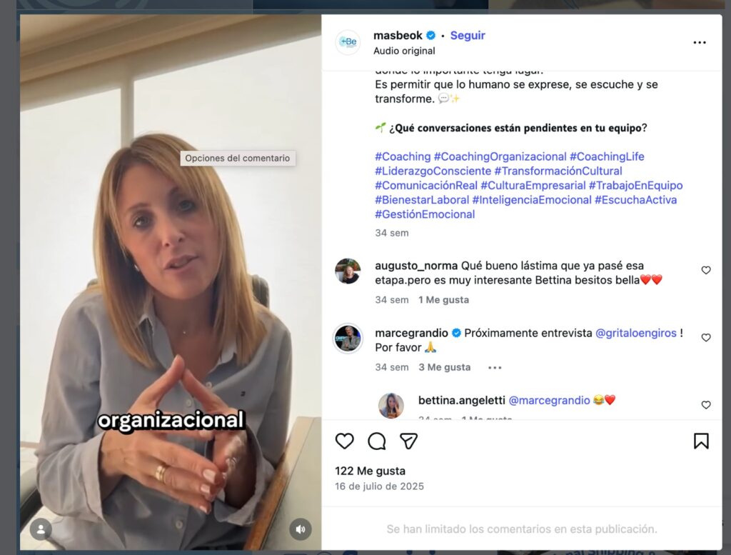 En la página de la empresa figuran muchos comentarios de clientes como el de Hernán, un coaching ejecutivo que destacó el trabajo de Bettina cuyo “impacto fue notable”. Entre otras cosas, le destacó “su enfoque estratégico y su capacidad de generar claridad en contextos complejos”, de mismo modo que aseguró: “Combina un profesionalismo impecable con una visión aguda para identificar oportunidades de desarrollo y superar desafíos”.